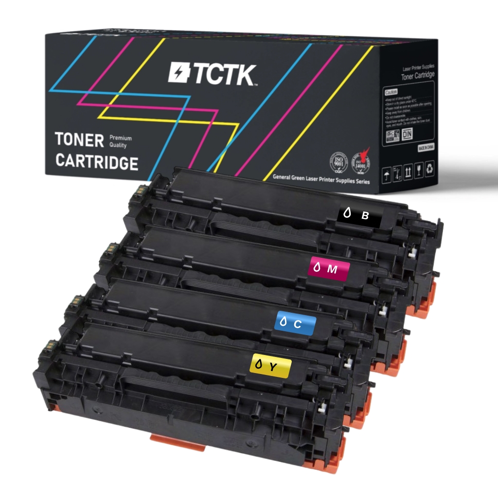 Qualité garantie: Nous privilégions l'excellence. Chaque cartouche TCTK est soumise à des tests rigoureux pour valider sa performance, sa résilience et sa compatibilité avec les imprimantes Multipack (4) Toners CMYK (Cyan/Magenta/Jaune/Noir) Compatible avec HP Color laserJet, Laserjet - Remplace 304A (CC531A) / 305A (CE411A) / 312A (CF381A) / CRG-718 (2660B002).
